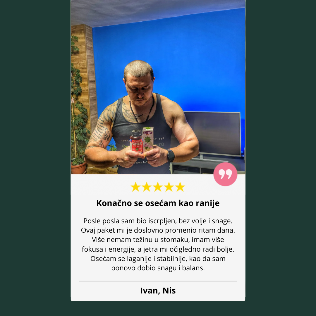 ZDRAVAR je moćan spoj tri biljke – Tribulus, Maka i Sikavica – koji prirodno povećava energiju, izdržljivost i libido. Bez veštačkih stimulansa, samo čista prirodna podrška za muškarce koji žele više snage, fokusa i vitalnosti svakog dana.